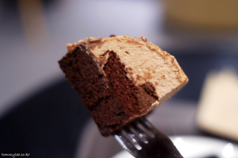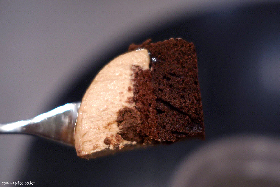 바텀 부분은 브라우니 느낌인데.. 퍽퍽하고 초콜릿맛도 미약하고 해서 별로였어요.. 돔 부분인 무스랑 가나슈는 먹을만하고요..