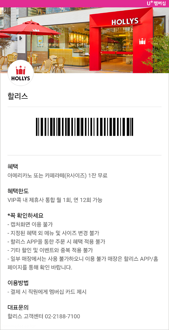 유플러스 혜택을 누른 후 유플러스 멤버십 바코드를 키오스크에 갖다 대면..
