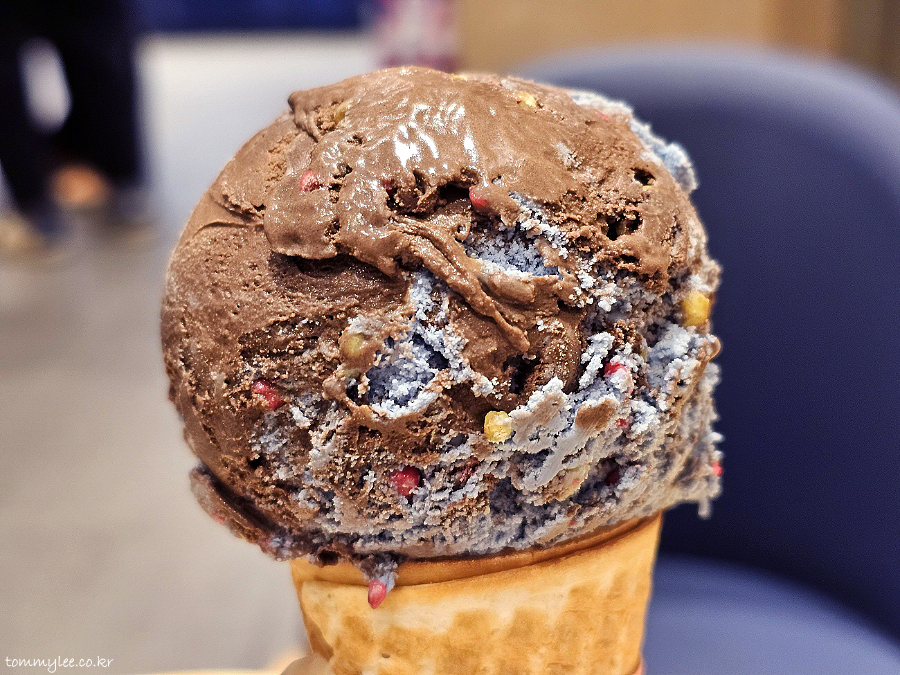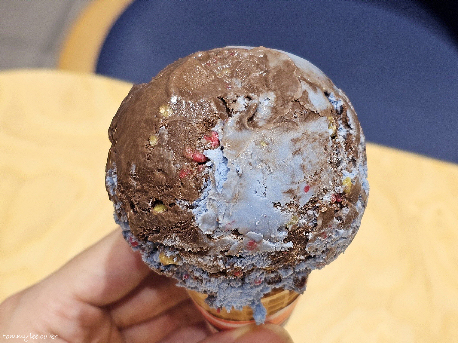 암튼 할로윈 시즌에는 무조건 먹어줘야 하는 플레이버.. 초콜릿 아이스크림, 민트 아이스크림 조합에 팝핑캔디가 들어간 초코민트계 아이스크림이 되겠고요..