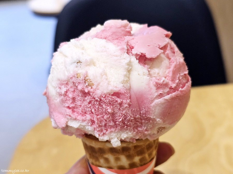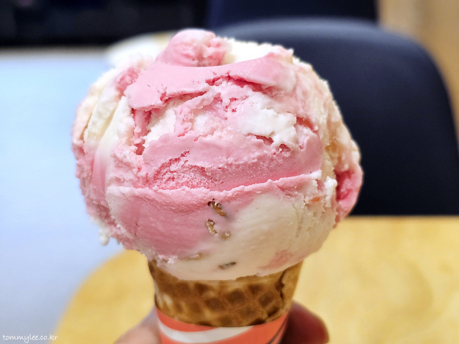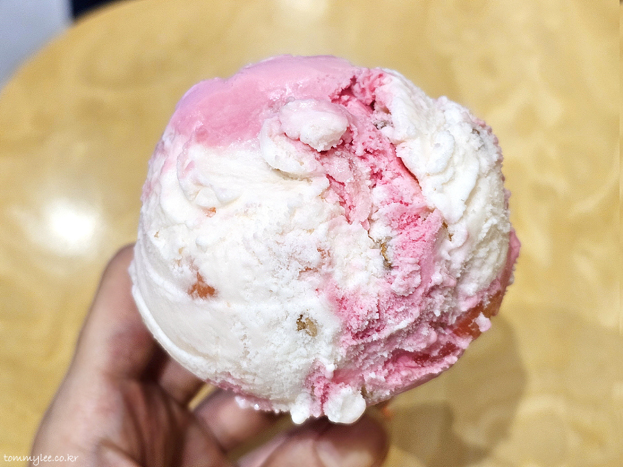 비비드한 핑크색이 복숭아스럽지가 않아서 이게 좀 거슬리긴 하는데.. 뭐 참고 먹으면 되는 거니까요.. 암튼 숭아야, 그릭다는 배스킨라빈스 복숭아계 아이스크림 중에서 젤 맛나다고 생각합니다.. 계속 팔아줬으면 좋겠다는 욕심이 들 정도네요..
