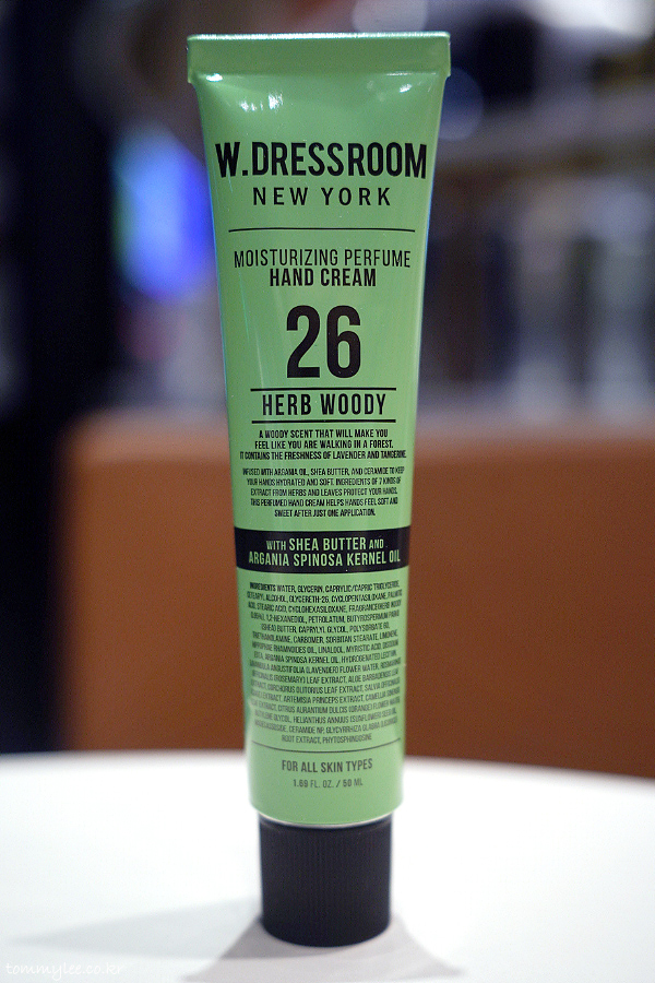 W.DRESSROOM.. MOISTURIZING PERFUME HAND CREAM.. 26 HERB WOODY.. 더블유 드레스룸.. 모이스춰라이징 퍼퓸 핸드크림.. 이십육 허브우디.. 가격 : 12,000원..