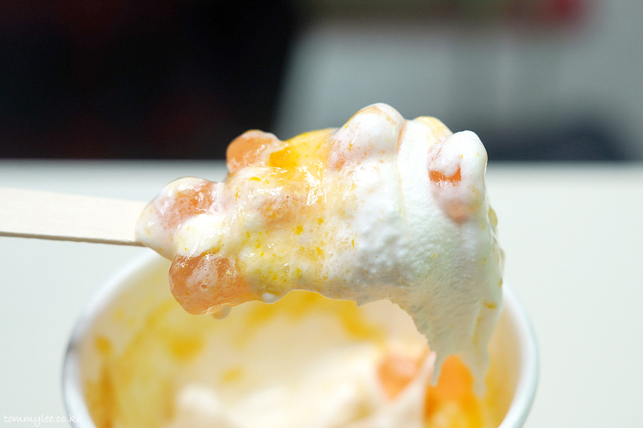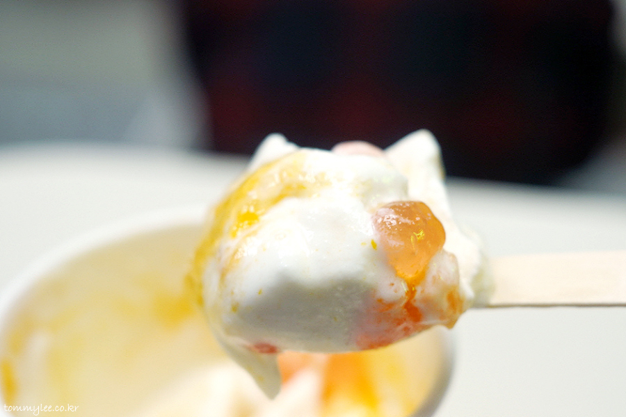 토핑이랑 소스를 넣고 돌리진 않았지만.. 망고 젤리는 생각보다 넉넉하게 들어가 있었어요.. 망고 소스 많이 안달고 맛있네요..