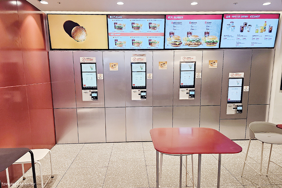 새빨간 복도를 지나 매장 안으로 들어서면 뭐 요런 롯데리아를 만날 수 있습니다.. 일반 매장과는 많이 다른 분위기인지라 현실에서 잠시 벗어나 다른 차원에 있는 롯데리아의 세계로 들어온 느낌 받을 수 있답니다..