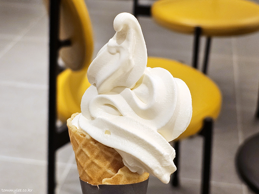 힘조절에 살짝 실패하셨던지 소프트 아이스크림콘이 정상적인 매끈한 모양으로 제공되진 못해서 아쉽지만.. 양은 엄청 많이 주셨기 때문에 오히려 감사합니다~입니다.. ㅋㅋㅋ..