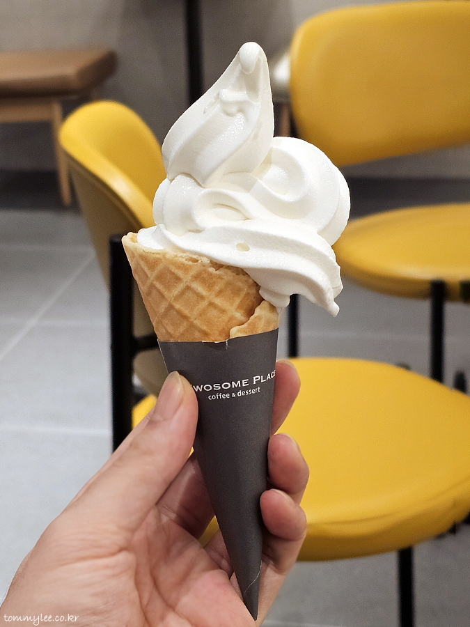 바삭한 와플콘의 투썸플레이스 밀크 소프트아이스크림 콘..