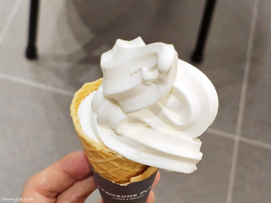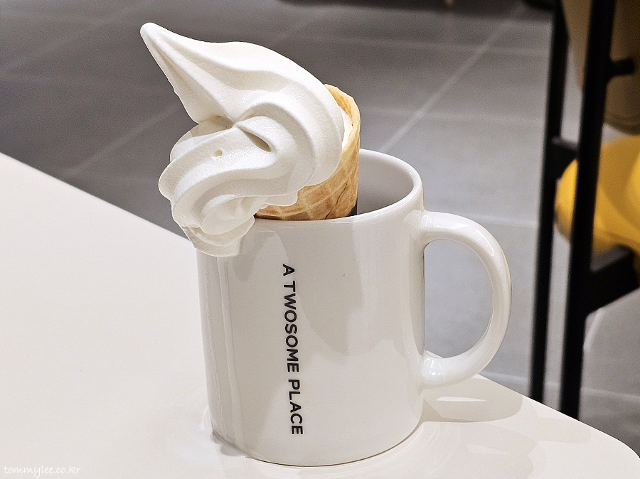 위에서 바라보면 이런 느낌.. 평소에 폴바셋이랑 크리스피크림에서 밀크 소프트 아이스크림을 자주 먹는데.. 투썸은 확실히 그 둘과는 다른 맛이에요..
