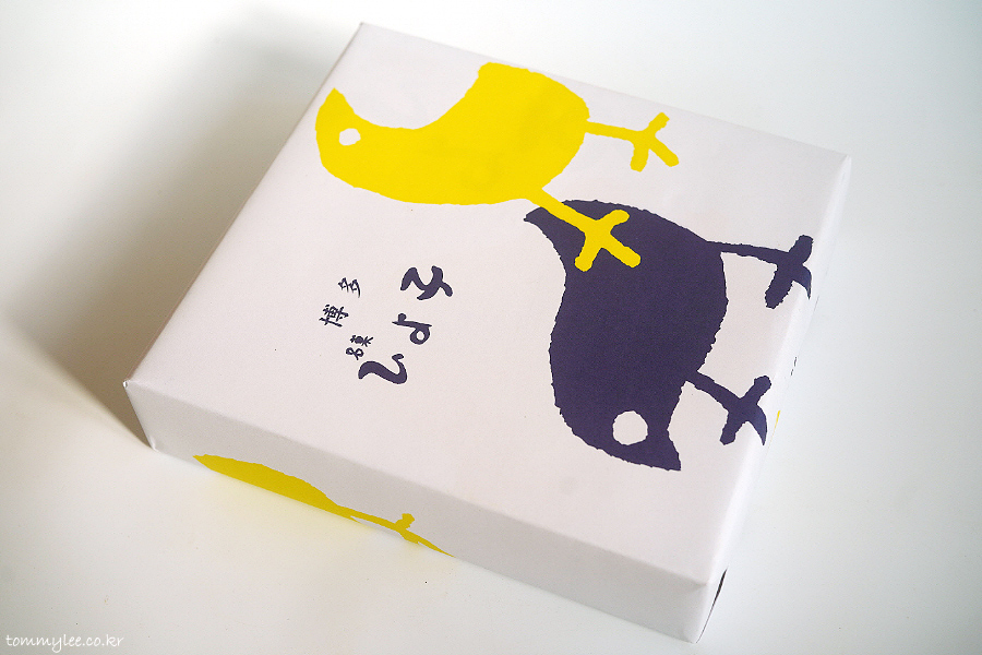 종이 포장지를 뜯어 내면 이렇게 노란색 병아리가 그려진 명과 히요코 진짜 박스가 등장하게 되겠고요..