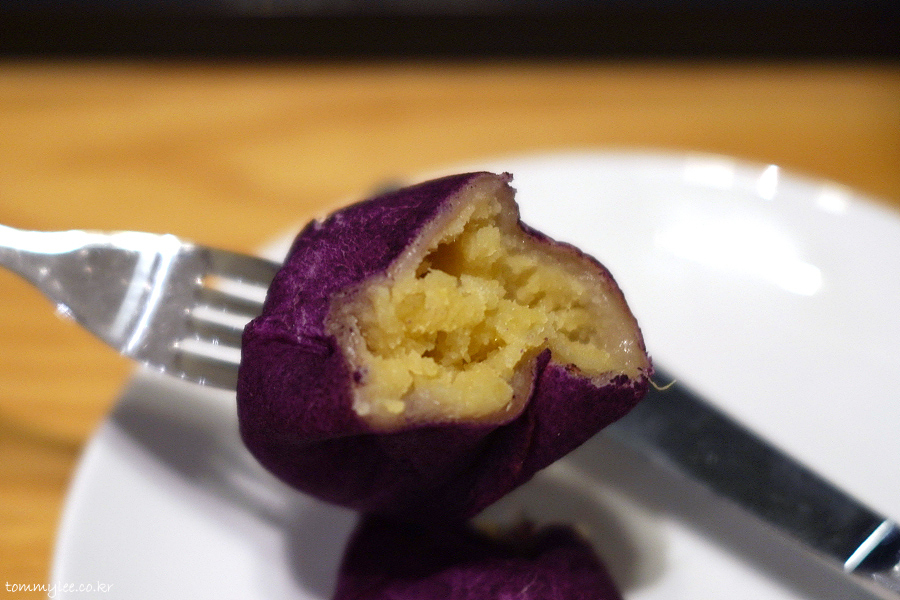 생지는 빵이라기 보다는 떡에 더 가깝다고 봐야 하겠는데.. 찰진 그 느낌이 고구마필링과 따로 노는 기분이 들어서 그다지 어울리진 않는단 생각..