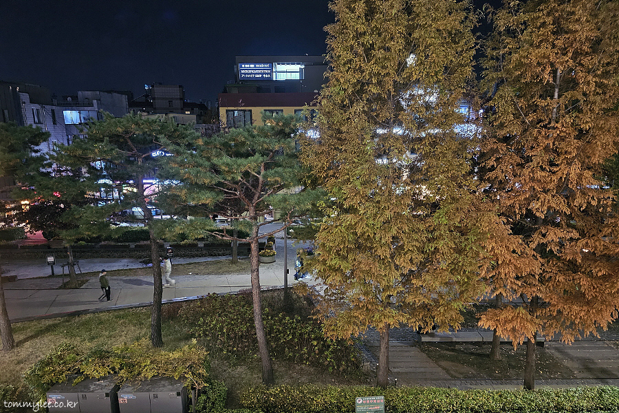 3층으로 이동.. 연트럴파크 보이는 1인석에 자리했어요.. 연남 할리스 창가좌석에 앉으시면 이렇게 연트럴파크를 바라보면서 음료와 디저트를 즐기실 수 있답니다.. 할리스 정면에 있는 나무가 엄청 높아서 뷰가 그다지 좋진 않아요.. ㅡㅡㅋ..