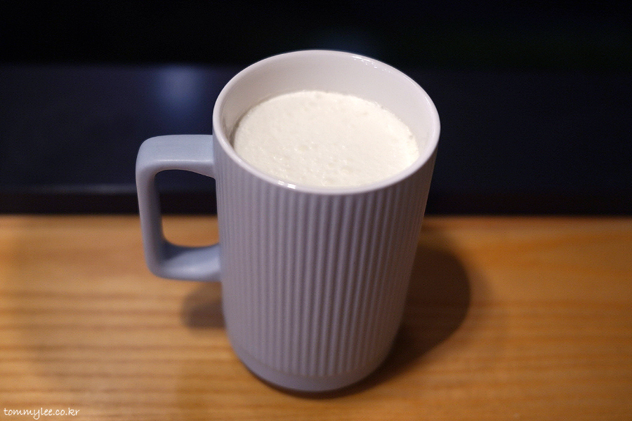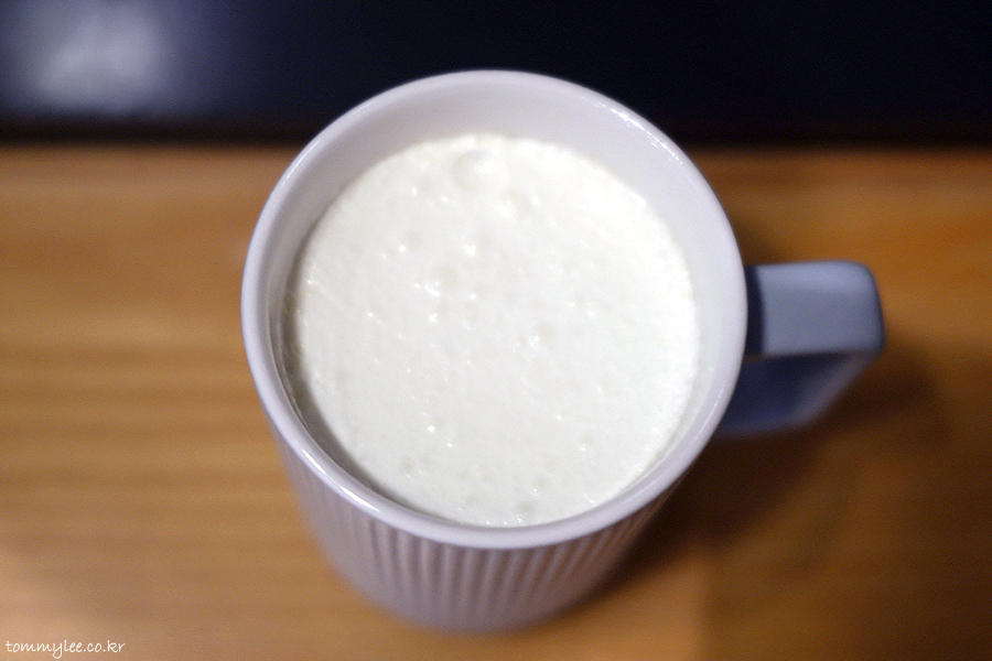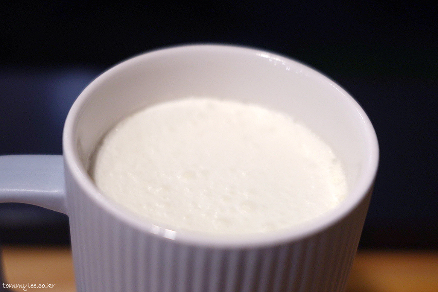블랙아리아 전용머그에 제공된 우리 고구마 밀크폼 라떼.. 밀크폼이 생각보다 풍성하게 나오진 않아서 아쉽네요..