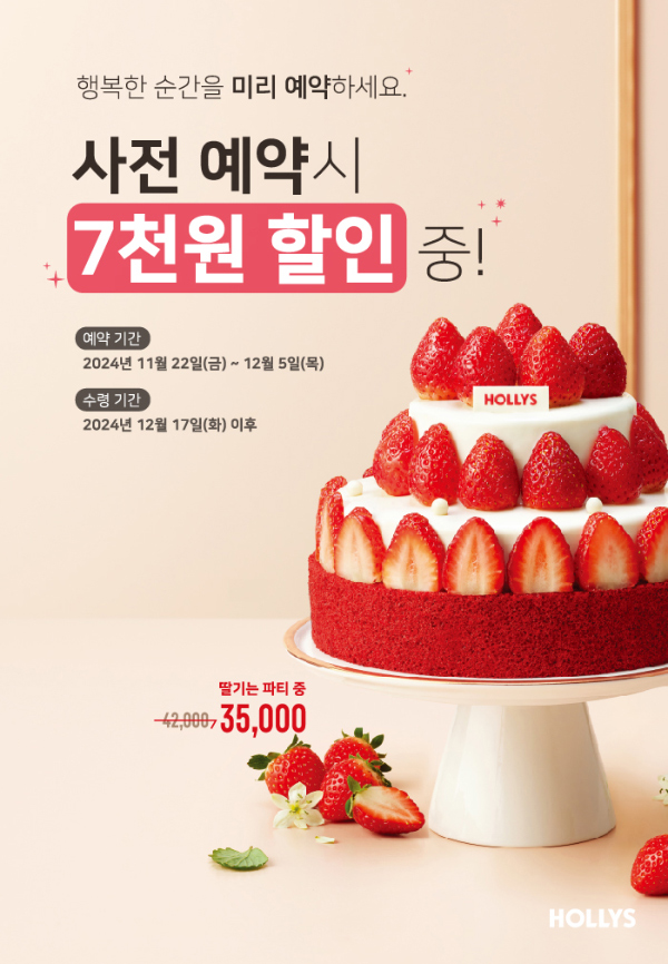 할리스 크리스마스 케이크 딸기는파티중 사전예약 이벤트로 7천원 할인 있습니다.. 레드벨벳 시트에 딸기 장식을 올린 2단 케이크가 대세입니다.. 과연 저 비주얼이 제대로 나올지는 의문스럽지만.. 딸기는파티중이 예쁘게 잘 나온 것 같긴 함..