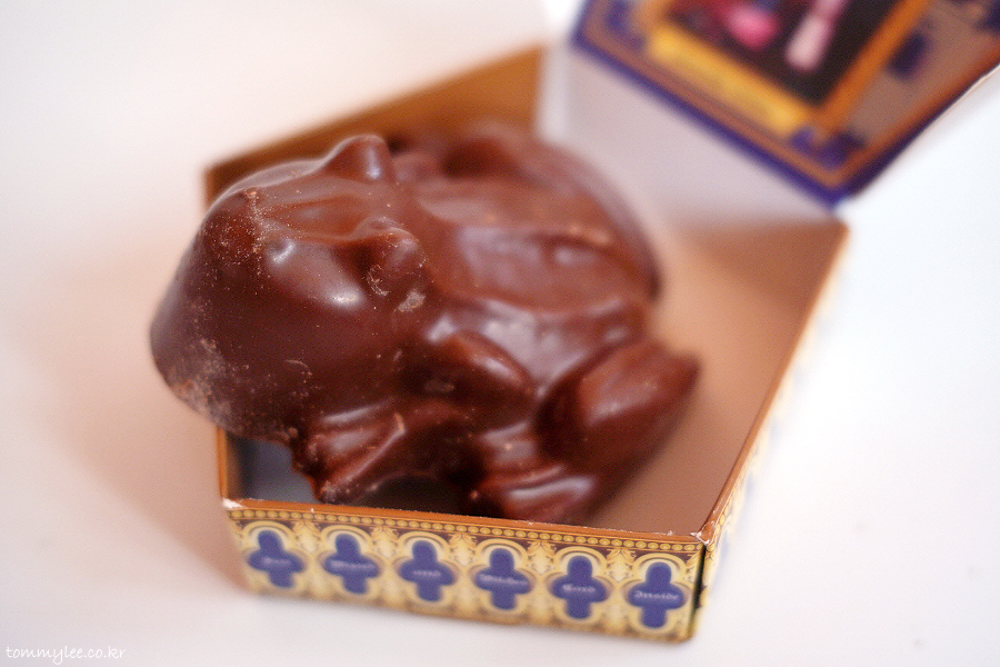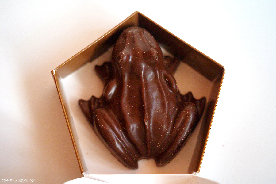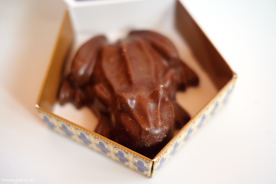 개구리를 뒤집어 보면 이런 느낌.. 초콜릿 가루가 덕지덕지.. 그래도 상태가 나쁘진 않았어요.. 한국까지 얌전히 들고 오신 듯.. ㅡㅡ;;..