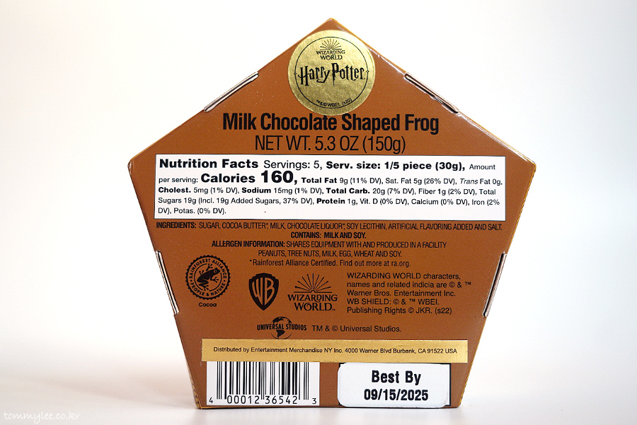 초콜릿 개구리 박스는 뭐 이런 느낌.. 5각형의 펜타 박스이고요.. 패키지가 해리포터 영화에 나온 그 모습과 아주 유사합니다..