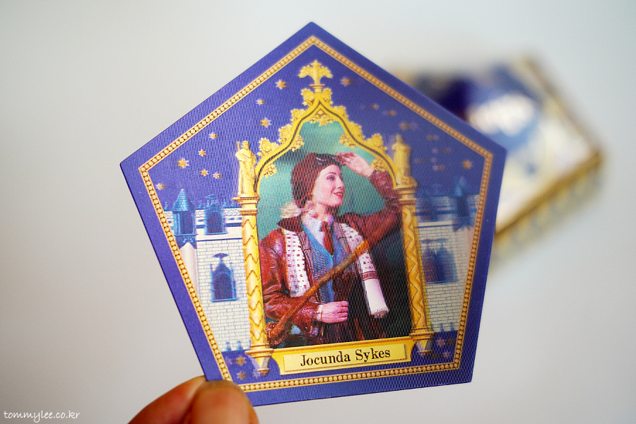 마녀카드도 뚜껑에 장착해 본모습입니다.. 영화 속에 나온 개구리는 동작이 많이 날렵하고 얼굴도 귀여운 느낌이었는데.. 두꺼비 수준의 강인한 바디의 근육질 개구리 초콜릿이었어요..