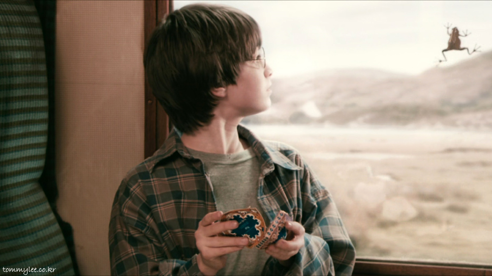 그래서 기억을 되살리기 위해 영화 어디서 이 개구리가 나왔었는지 찾아보았습니다.. 해리포터1 '해리포터와 마법사의 돌'을 캡처한 장면이고요.. 아쉽게도 개구리가 도망쳐서 해리는 이 초콜릿을 먹진 못한답니다.. 영화 속의 그 장면 그대로 만든 초콜릿 박스죠??..