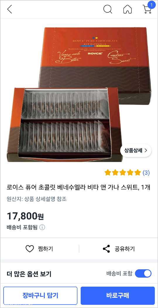 로이즈 퓨어 초콜릿은 쿠핑 직구로 나름 합리적인 가격에 구입할 수 있답니다.. 로이즈 퓨어 초콜릿은 10,900원으로 일본 직구보다 더 저렴하다는 사실.. 배송료가 붙긴 하지만 그래도 나쁘지 않은 가격.. 쿠팡 직구 로이스 퓨어 초콜릿 베네수엘라 비타 앤 가나 스위트 구입 링크 → 요기로..