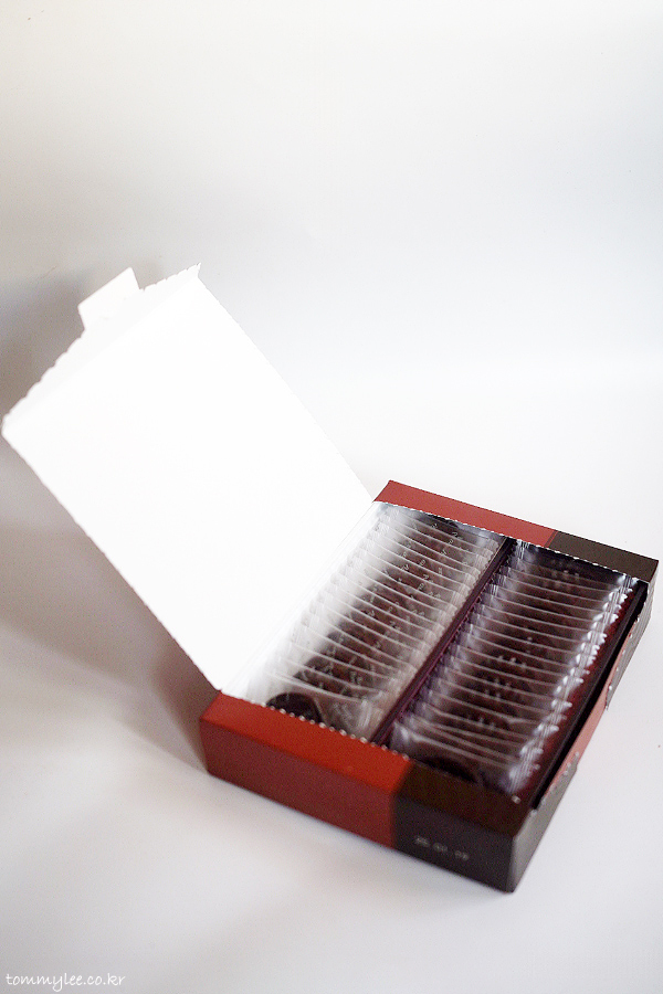 베네주엘라비터와 가나스위트 초콜릿이 20개씩 플라스틱 트레이에 한 줄로 나란히 들어 있고요.. 트레이는 박스 밖으로 꺼내 분리해낼 수 있는 구조입니다..