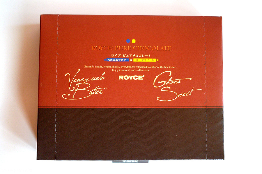 ROYCE'.. PURE CHOCOLATE.. VENEZUELA BITTER & GHANA SWEET.. 로이즈.. 퓨어 초콜릿 베네주엘라 비터 앤 가나 스위트.. 가격 : 800엔(7,300원)..
