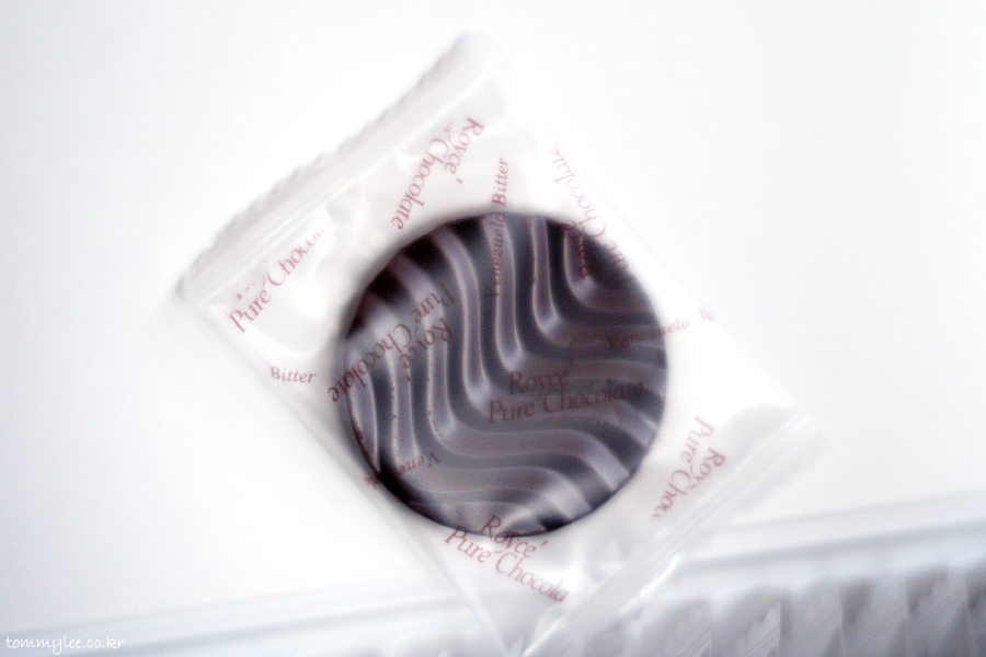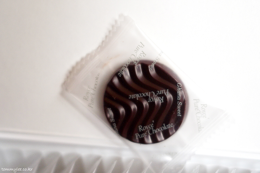 개별 포장된 초콜릿에 ROYCE' PURE CHOCOLATE.. GHANA SWEET라고 친절하게 써있기 때문에 베네주엘라 비터와 헷갈릴 수는 없을 듯..