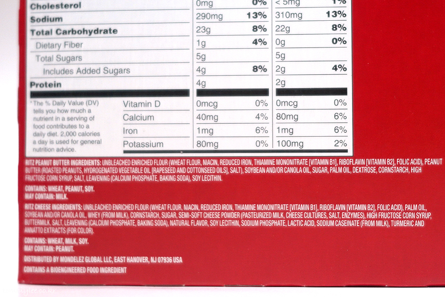 리츠 피넛버터 샌드는 1팩(6개) 39g, 리츠 치즈 샌드는 1팩(6개) 38g인데요.. 칼로리는 팩 당 200Kcal로 의도적으로 동일하게 맞춰서 내놓은 듯 싶습니다.. 이렇게 제품 칼로리에 신경을 곤두세우면서.. 왜 그리 뚱뚱한 사람이 넘쳐나는 건지.. ㅡㅡa..