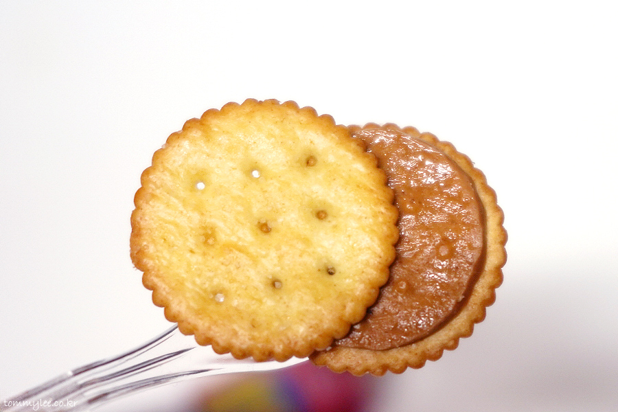 크래커 사이에 피넛버터 필링이 이렇게 들어 있습니다.. 피넛버터 필링이 혀끝에 닿는 순간 아 미국맛이구나 싶은.. ㅋㅋㅋ..