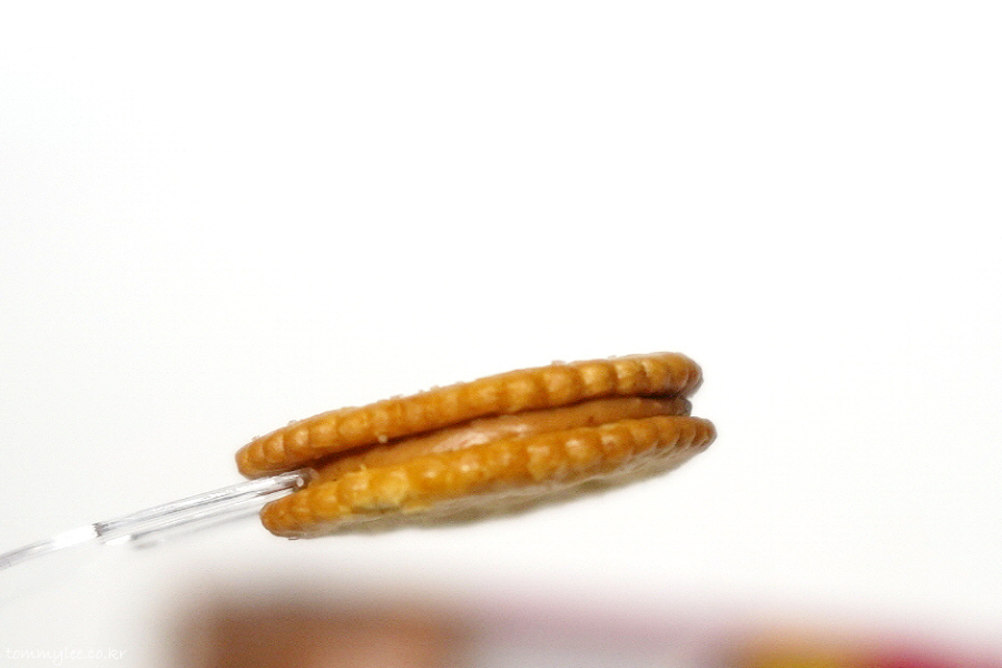 피넛버터 샌드 안쪽은 뭐 요런 느낌입니다.. 한국사람 입맛에는 조금 안 맞지 않나 싶을 정도로 과자가 많이 짭니다.. 이 점이 매우 맘에 드는.. ㅋㅋㅋ..