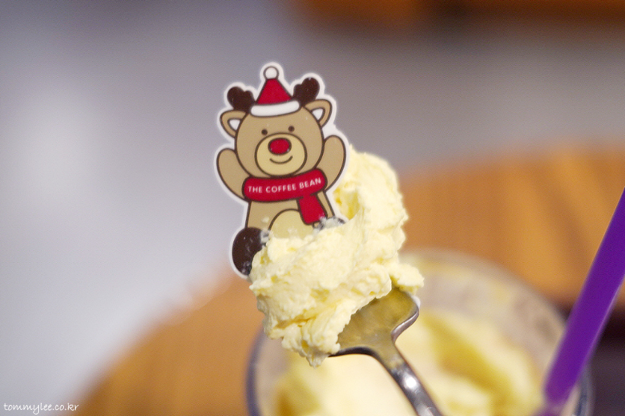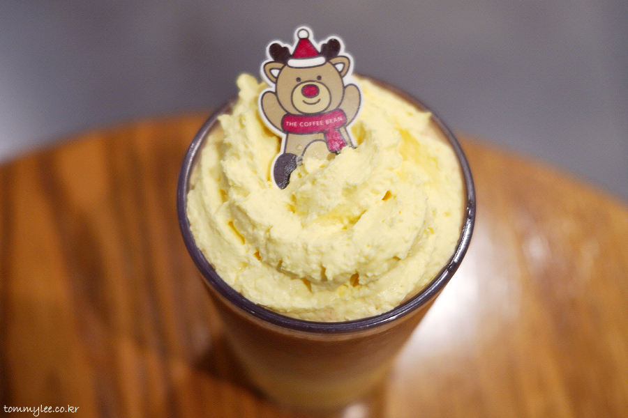 지인분의 귀차니즘 덕분에 급 방문하게 된 커피빈이었는데요.. 디저트 신메뉴 메리홀리데이케익과 커피 신메뉴 골든커스터드크림라떼 둘 다 맛볼 수 있어서 훈훈한 시간이었답니다.. 골든 커스터드 크림 라떼는 매우 추천합니다.. 슈크림라떼 좋아하신다면 분명 만족할 수 있으리라 생각해요..