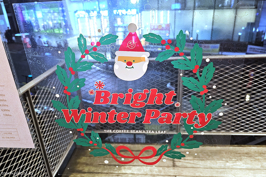퍼플오더 하면서 홍대입구역을 나섰는데.. 매장 도착 전에 메뉴 준비되었다는 알람이.. 제가 빨리 못걸어서.. 진짜 역에서 한참 걸림.. ㅠ.ㅠ.. BRIGHT WINTER PARTY.. 산타 캐릭터가 반겨줬던 커피빈 홍대역8번출구점..