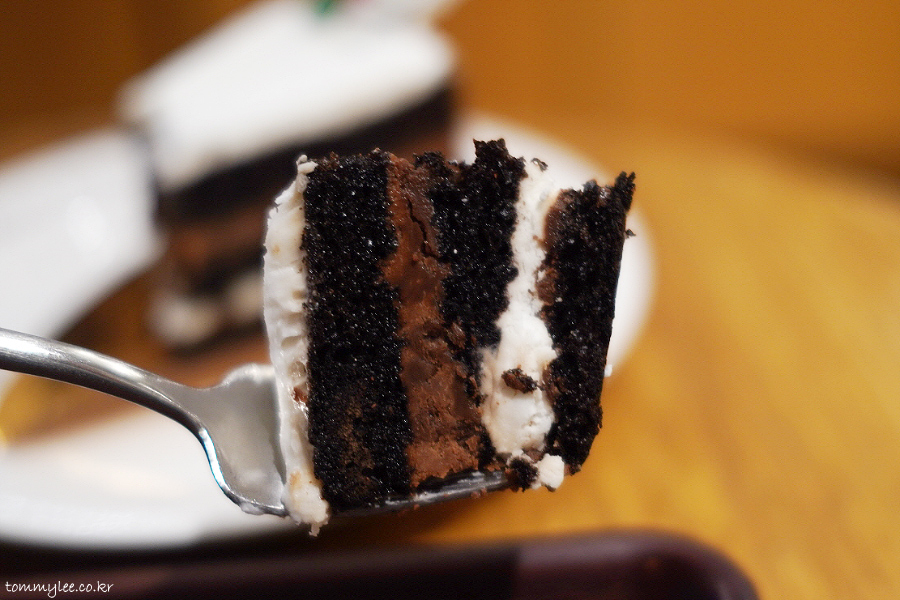 초콜릿 케익시트 사이에 초콜릿 가나슈와 우유크림 조합이라고 보시면 되겠습니다..