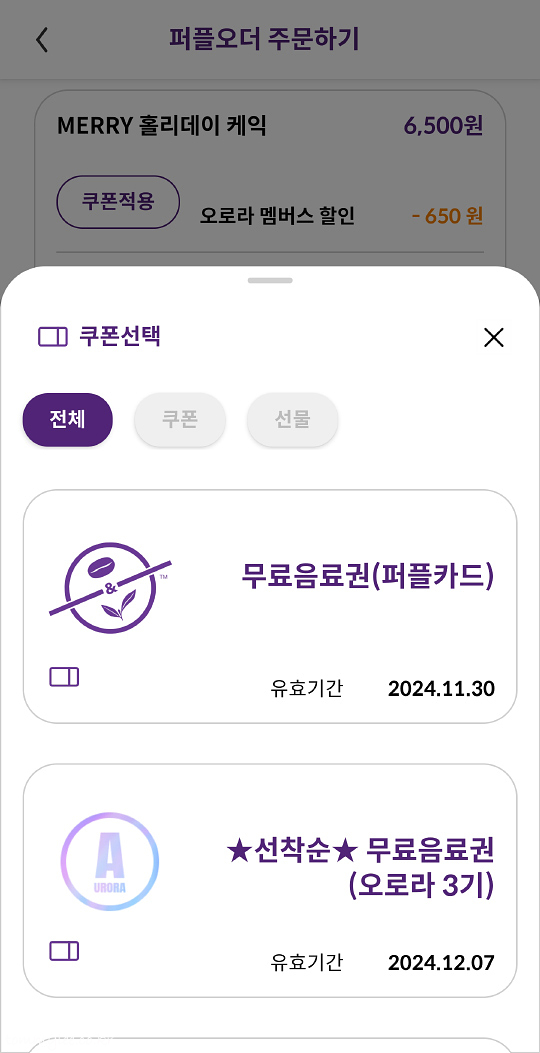지인분께서 주신 무료음료권 덕분에 올 수 있었던 커피빈.. 영화 보기 전에 빨리 먹어야 해서 퍼플오더로 빠르게.. 그나저나 15분만에 먹고 나가야 함.. ㅋㅋㅋ..