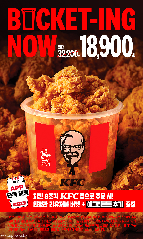 KFC BUCKETING NOW.. 치킨 8조각을 앱으로 주문 시 한정판 리유저블 버켓 + 에그타르트까지 추가로 증정한다는 훈훈한 내용이네요.. KFC 리유저블 버켓을 먼저 받으신 지인분이 국산에 식기세척기, 전자레인지 사용가능이라서 쓸만하다고 하셔서 행사에 참여하게 되었단..