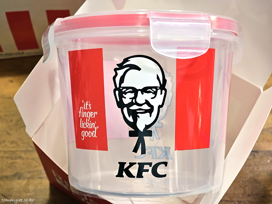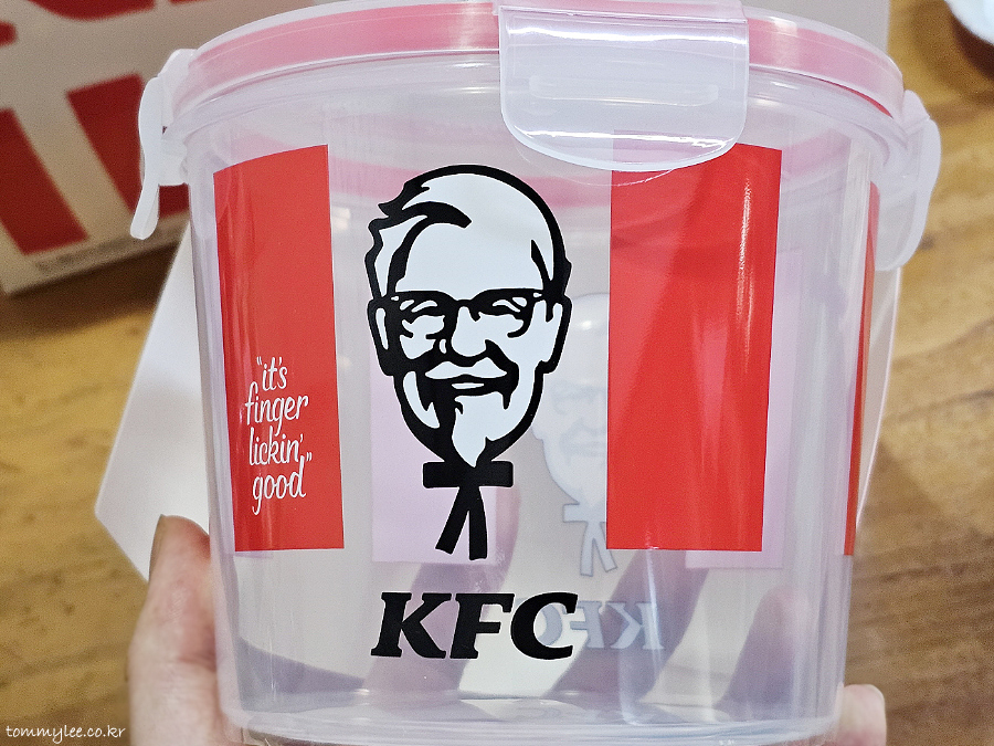 KFC 버켓팅 주문하면 받을 수 있는 리유저블 버켓입니다.. 치킨 다 먹고 오픈..