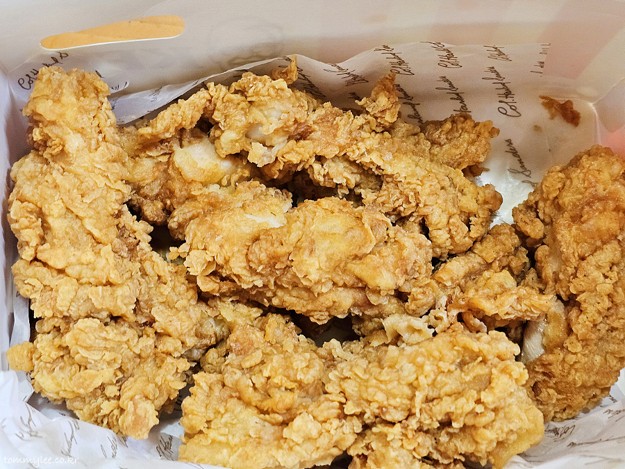버켓팅 행사 때문에 치킨을 거의 쉬지 않고 튀겨 내는지 평소보다 치킨이 훨씬 빨리 나왔더라고요.. 5분도 안 걸려서 준비완료 뜨길래 뭔가 했음.. ㅋㅋㅋ..