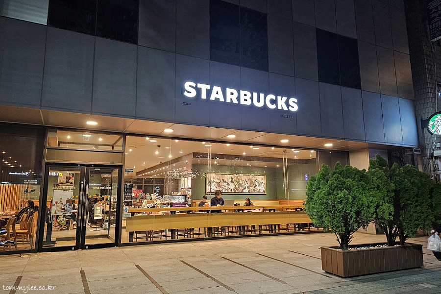 STARBUCKS.. DONGGYO.. 스타벅스 동교점.. 영업시간 : 07:30~22:00, 주말 08:30~.. 삿뽀로 홍대점 인근에 있는 스타벅스입니다.. 동교동삼거리의 홍대동교점과는 다른 매장..