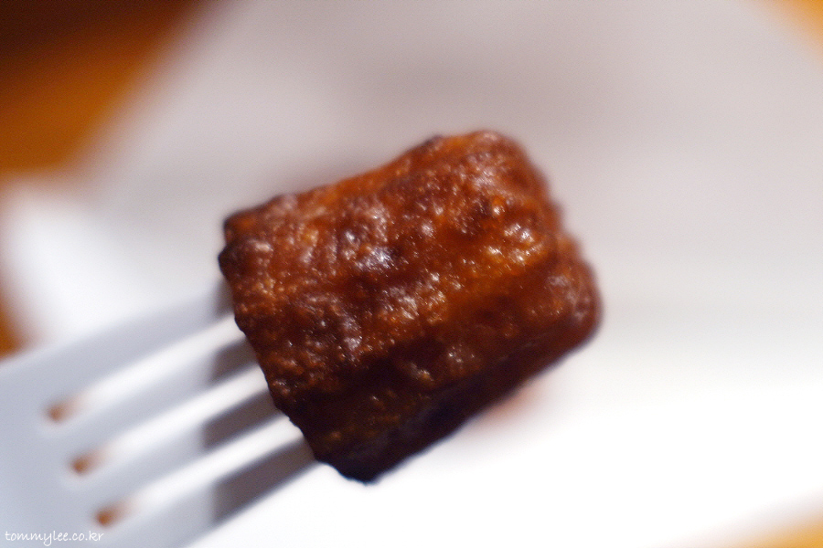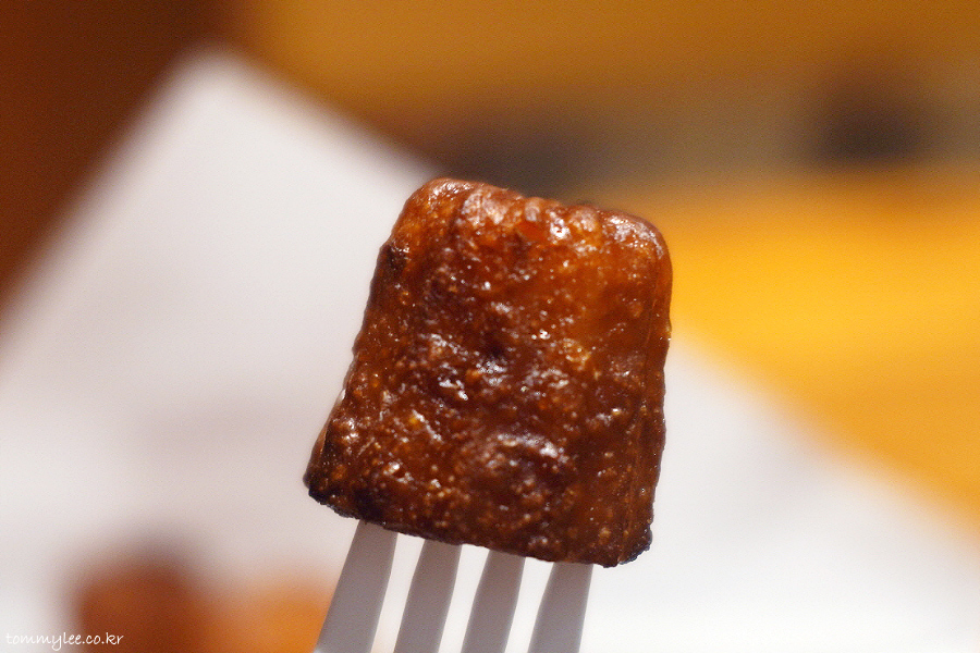 쁘띠 까눌레를 하나 집어 들면 이런 느낌.. 작지만 와일드한 비주얼.. ㅋㅋㅋ..