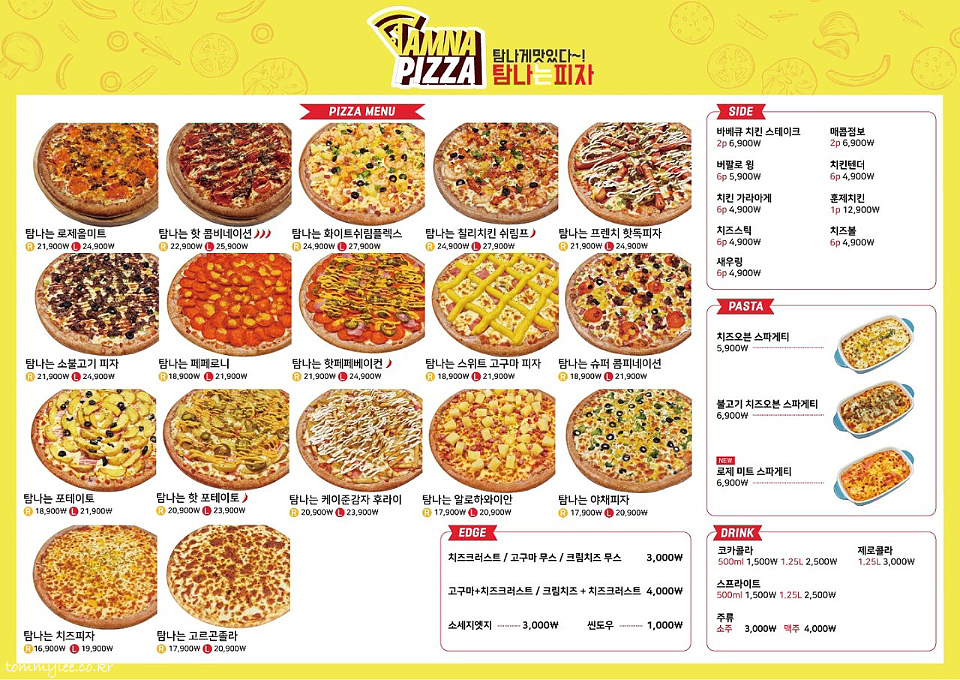 탐나는 피자는 로제올미트, 핫콤비네이션, 화이트쉬림프플렉스, 칠리치킨쉬림프, 프렌치핫독, 소불고기, 페페로니, 핫페페베이컨, 스위트고구마, 슈퍼콤비네이션, 포테이토, 핫포테이토, 케이준감자후라이, 알로하하와이안, 야채, 고르곤졸라, 치즈 이렇게 17종의 피자를 판매하고 있고요.. 가격은 라지 사이즈 기준 19,900원~27,900원입니다.. 간다효 추천피자인 탐나는 슈퍼콤비네이션 하나 고르고 나머지 한 판은 고르곤졸라 피자로 초이스..
