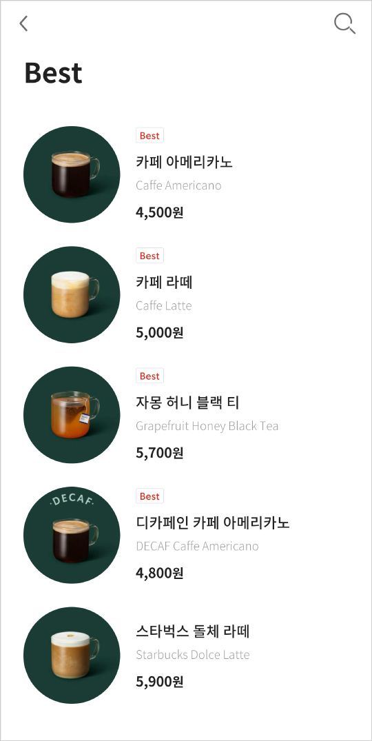 스타벅스 베스트 음료하면 카페 아메리카노와 카페 라떼를 들 수 있겠습니다.. 의외로 5위 안에 카푸치노가 못 들었네요..
