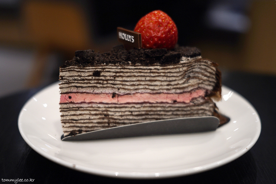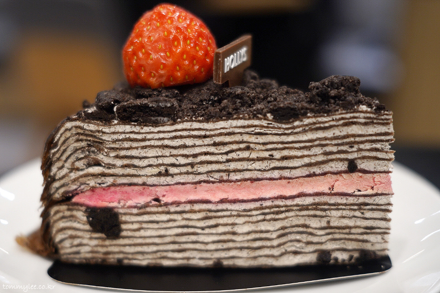 STRAWBERRY COOKIE AND CREAM CREPE CAKE.. 딸기 쿠키앤크림 크레이프 케이크.. 6,500원..