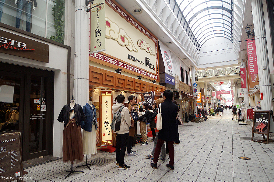이 아침에도 웨이팅이 있는 라멘집이 한 곳.. 이 눈에 띄게 줄을 서있는 라멘집이 어디인가 하면.. 카고시마 대표 라멘맛집 鹿児島ラーメン豚とろ 天文館本店 카고시마라멘 부타토로 텐몬칸본점..