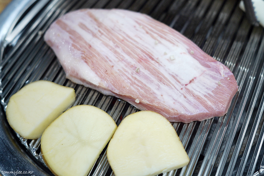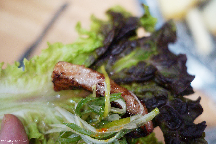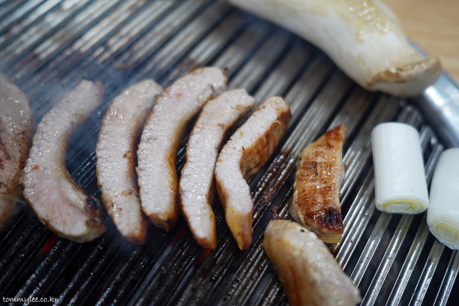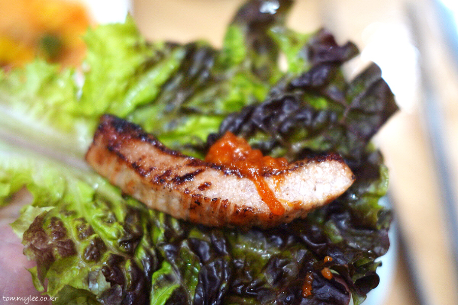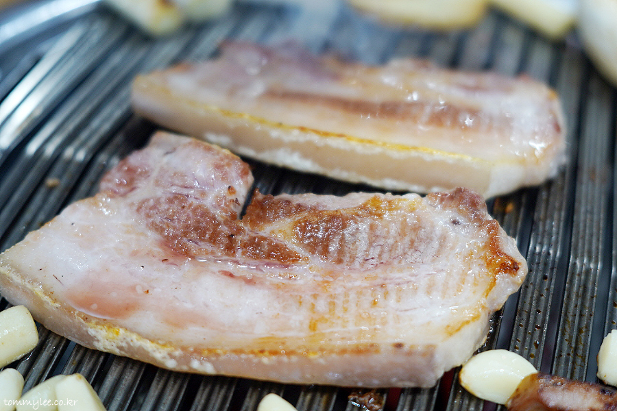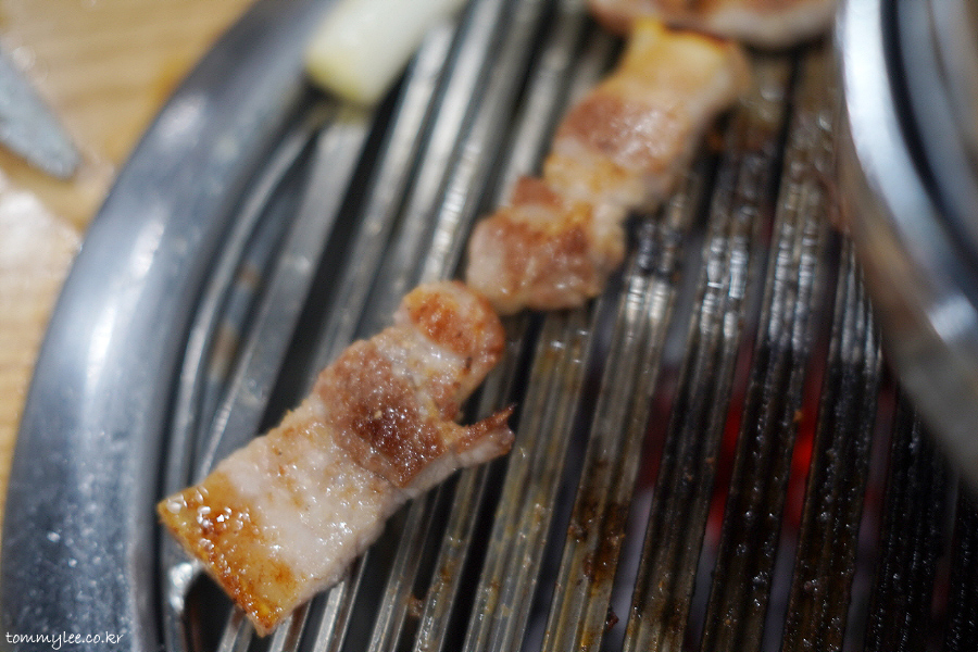 삼겹살이 기름이 많아서 그런지 확실히 크리스피한 텍스처가 좋긴 하더라고요..
