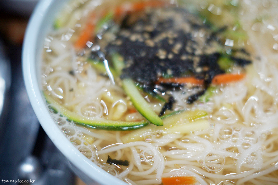 호박, 당근, 김, 통깨가 토핑 된 클래식한 스타일의 잔치국수였답니다.. 스프가 특히나 옛날 스타일이라 맘에 드신다고..