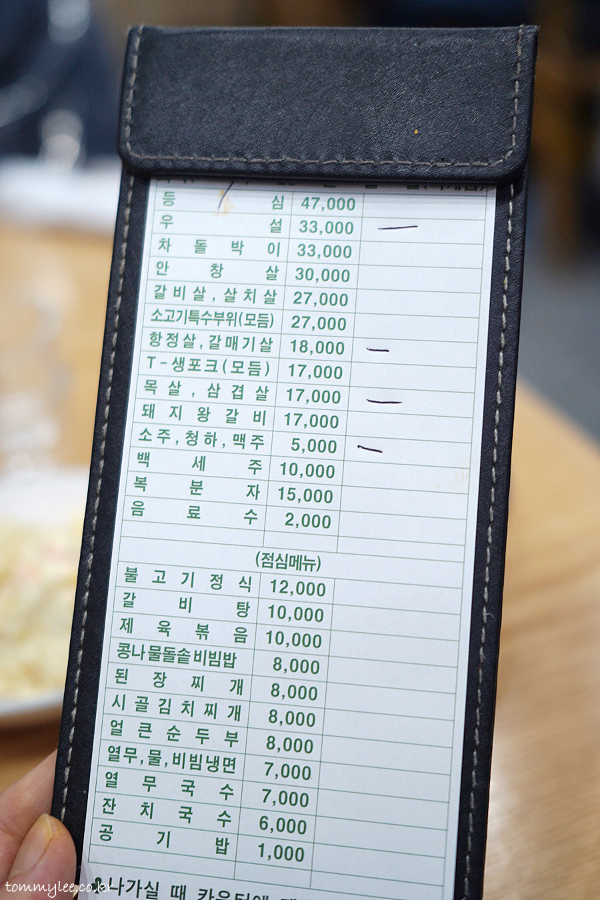손님이 많았던 관계로 메뉴판 사진도 찍을 수 없었네요.. 저는 원조마포소금구이 처음이라 지인분께서 알아서 주문해 주셨답니다.. 우설, 항정살, 삼겹살 주문..