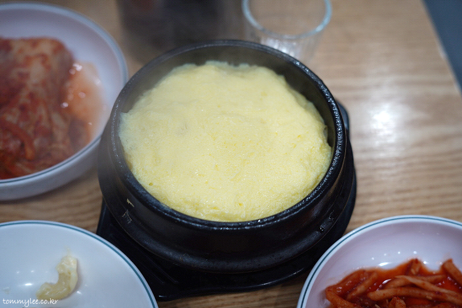 뚝배기 계란찜의 모습입니다.. 엄청 뜨겁게 나오고요.. 뜨거워서 호호~.. 뜨거운 만큼 맛납니다..