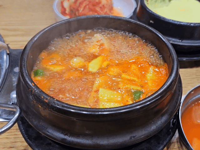 맹렬하게 끓고 있었던 뚝배기 된장찌개입니다.. 엄청 요란했음..