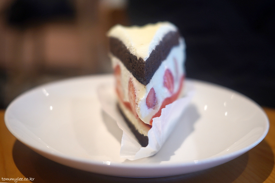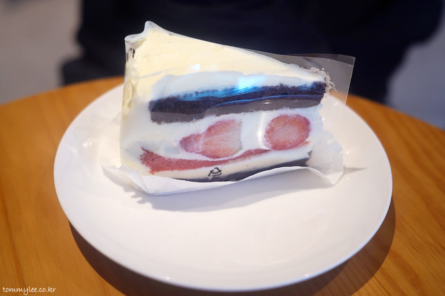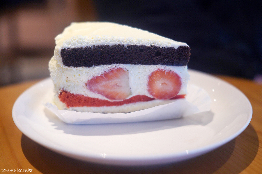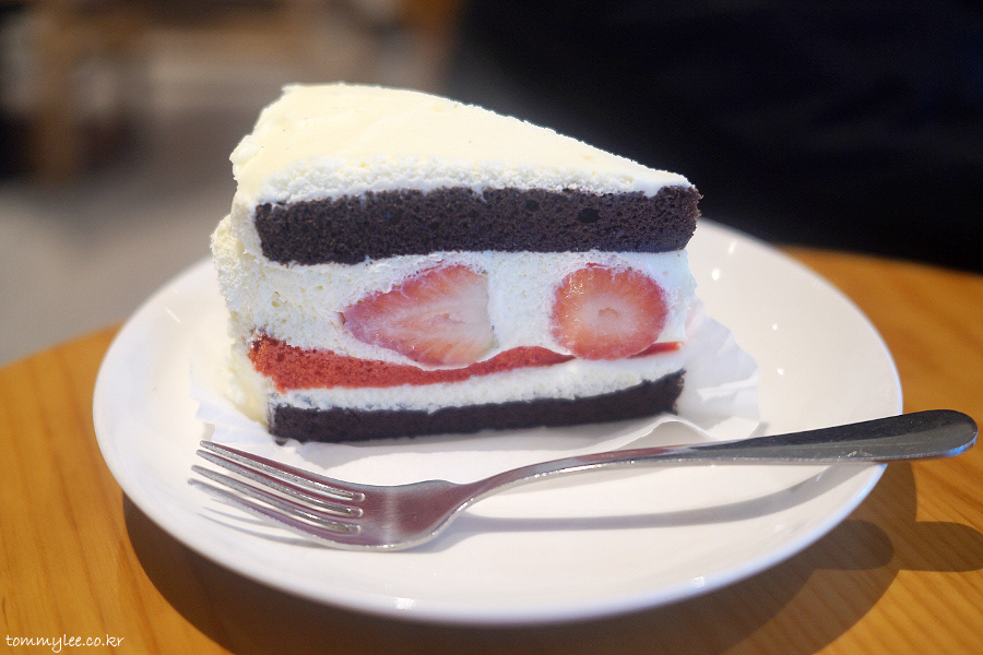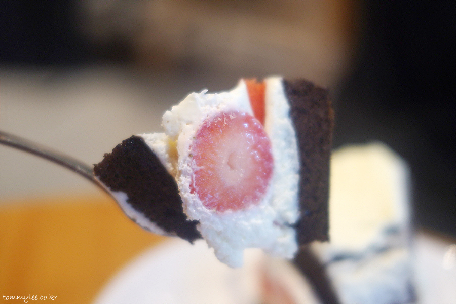 딸기뷔페 다녀온 직후라 배가 매우 불렀음에도 불구하고 딸기 초코 생크림 케이크 쑥쑥 잘 들어가네요.. ㅋㅋㅋ..
