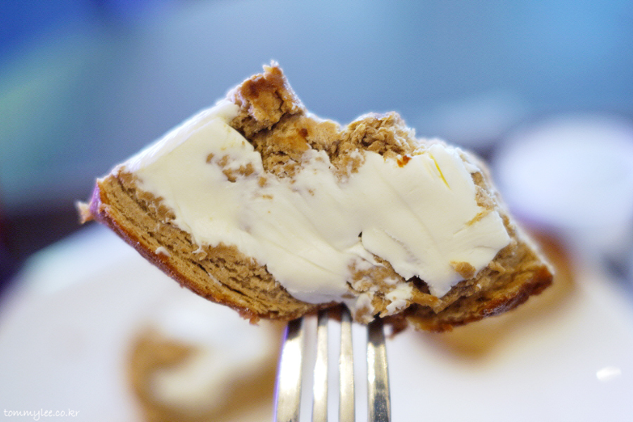 크림치즈를 발라서 냠냠.. 추억의 로티보이 맛이 나긴 합니다.. 모카 크러스트가 두툼하진 않고 버터리하지도 않긴 하지만 맛은 어쨌거나 비슷함..
