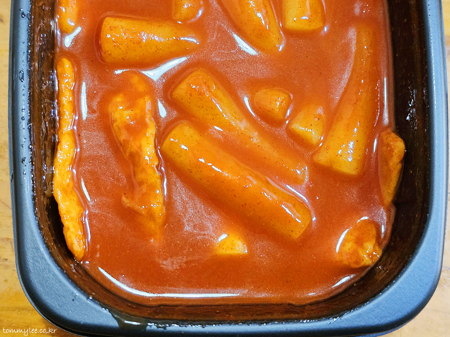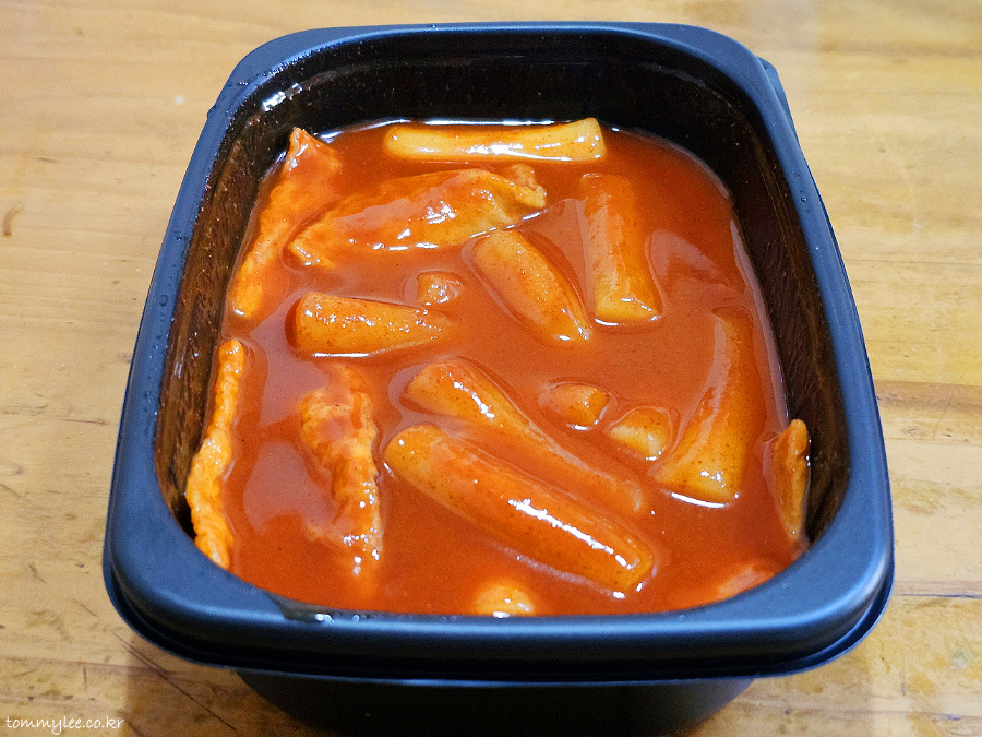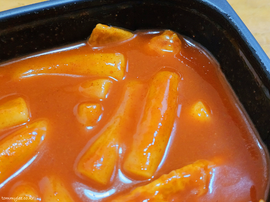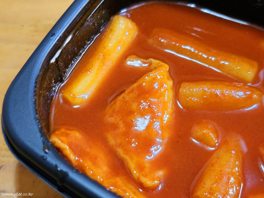 짧게 컷한 밀떡과 납작한 부산어묵이 들어간 클래식한 스타일의 국물 떡볶이네요.. 보기엔 순한맛 같았으나 꽤 칼칼하고 매웠어요..
