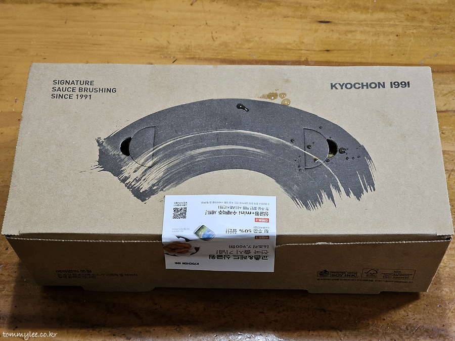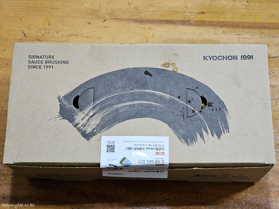 국물맵떡 후에는 교촌옥수수의 시간입니다.. SIGNATURE SAUCE BRUSHING SINCE 1991이라고 쓰여있는 교촌치킨 박스의 모습..