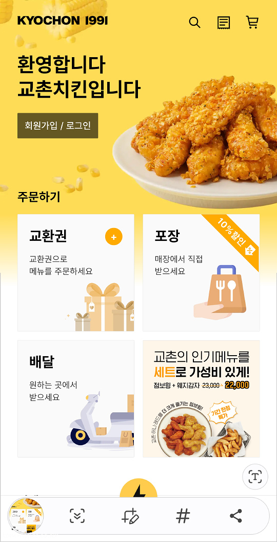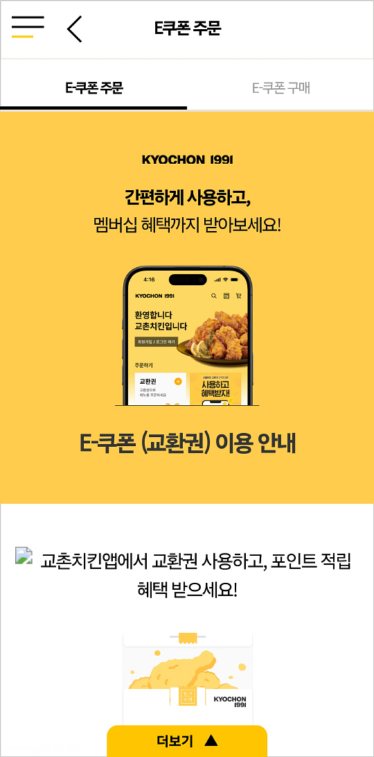 교촌치킨 E쿠폰은 교촌 모바일웹에선 사용이 불가하고 교촌치킨앱에서 사용이 가능했습니다.. 쿠폰 사용을 위해서 앱 설치함.. ㅡㅡ;;..