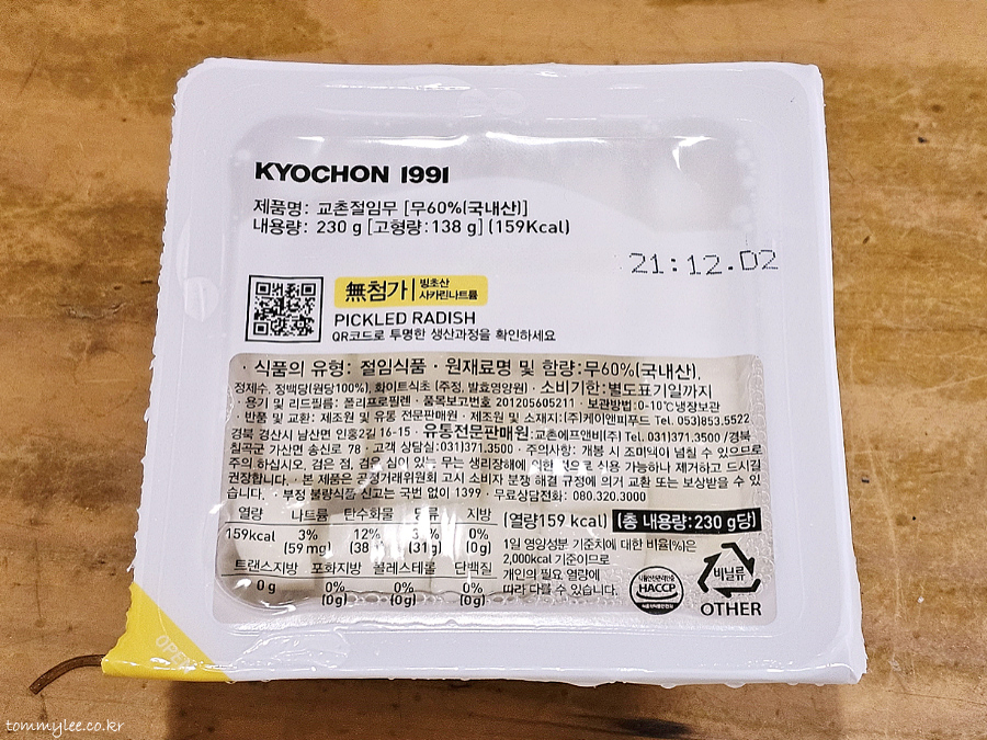 교촌 절임무.. 국내산 무, 빙초산, 사카린나트륨 무첨가의 착한 무피클..